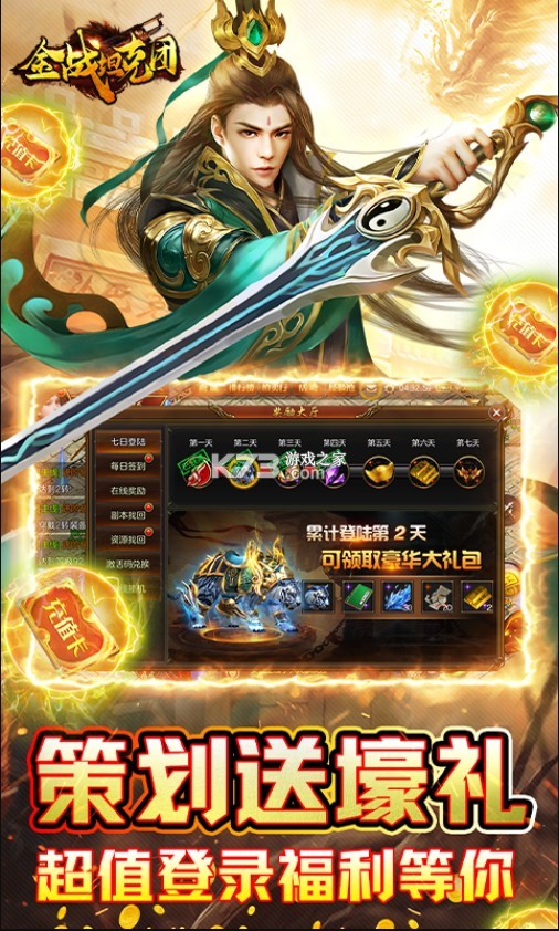 《金战坦克团满v版》是一款全新模式的传奇游戏,每日打金玩法,幸运大爆发,首充免费赠送极品神装,海量稀有道具和极品武器,让你直接一秒砍boss,专属vipboss大挑战,还原经典传奇。