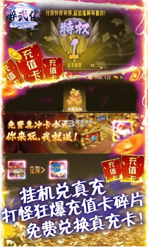 ★挂机兑真充,上线打打小怪狂爆大量充值卡碎片,免费兑换真充卡!