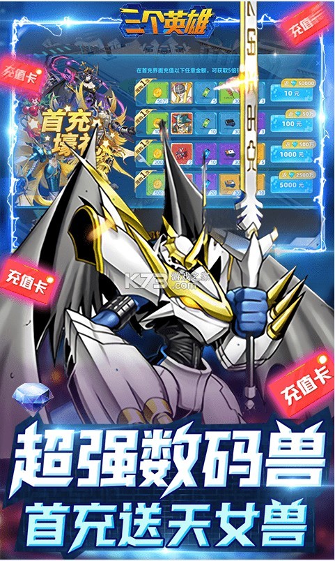 《三个英雄无限金币版》是一款数码宝贝原创的漫改游戏,游戏内有数百种数码宝贝能够供玩家来进行选择,开服登录还有海量福利礼包免费赠送,还有独特的月卡礼包奖励,免费送海量数码兽碎片。