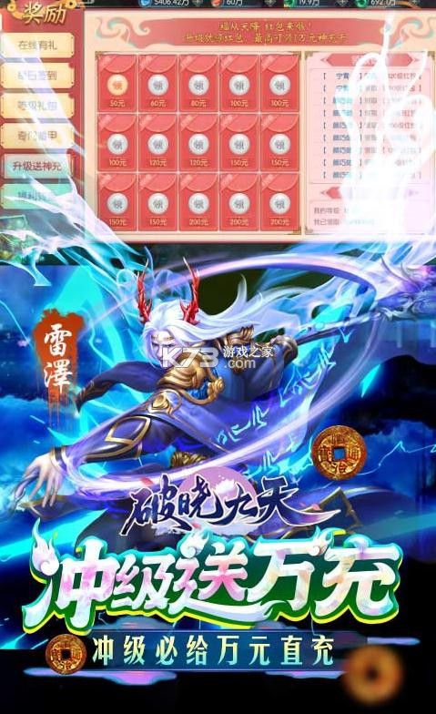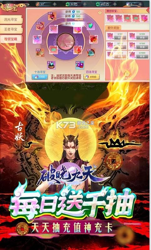 《破晓九天》领充值卡和无限组合可抽神充卡,各种人物玩法都可掉落,无限自由无限合成,勇闯天涯逆天法宝收入囊中,体验刺激的修仙之旅,精致的服装,每日送千抽,0氪自由充,无限刷gm号,开局就送超级多的福利。