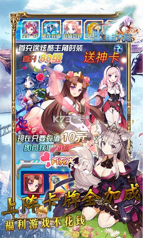 《坠星大陆爆真充版》是一款二次元抽卡类游戏,二次元萌妹来陪你一起组队冒险,全新福利游戏,无门槛送神卡,0氪档也能玩,福利直接掉落真充红包,各种核心道具随便买,上线还有至尊vip赠送。