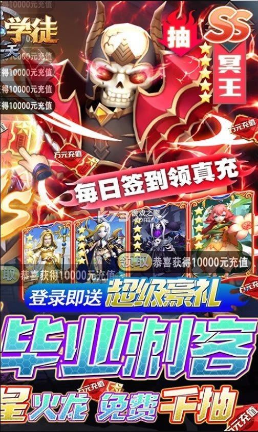 1、升级送1000抽、送10000充值、抽卡抽到手软,钻石多到溢出背包。