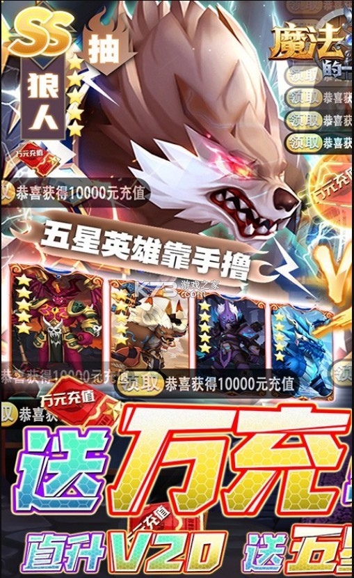 3、充值比例1:500,首充三倍,更有首充奖励送稀有橙色装备、SS英雄宝箱!