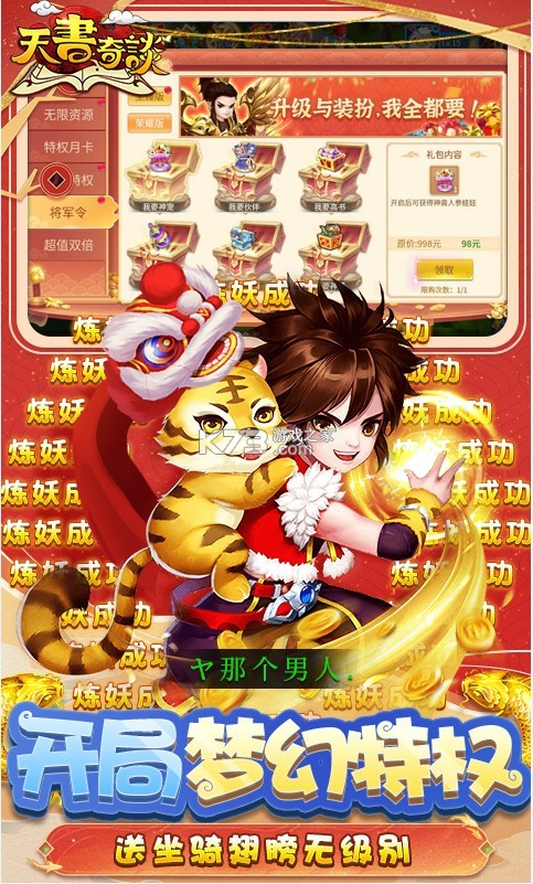 《天书奇谈无限资源版》是一款十年经典网页游戏所改编的手游,带你重温经典的剧情故事和各种boss,全新GM功能开放,首充,月卡,资源全部都可以免费刷,还有全新的内购活动无限制刷充值卡。