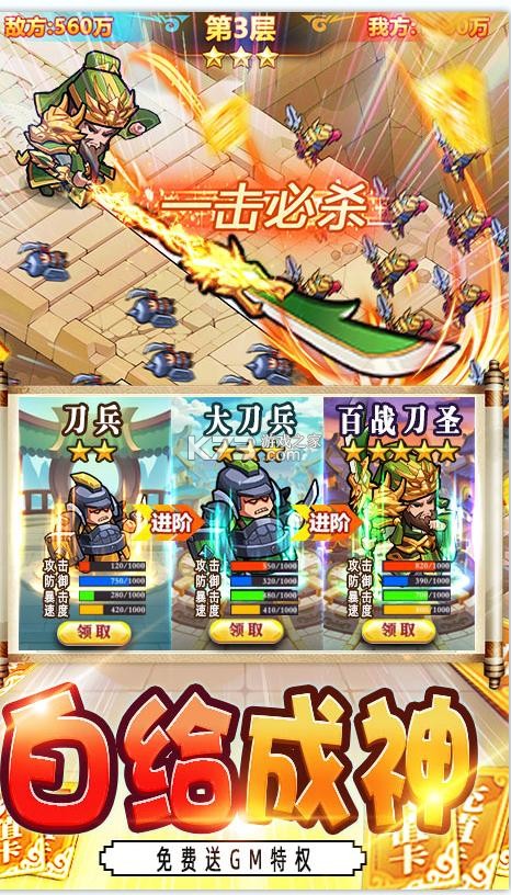 数百风格独特的三国猛将、绝色倾城的百媚佳人,让你欲罢不能。独创武将转生,让武将成真成神,战力超越巅峰。