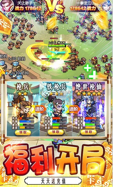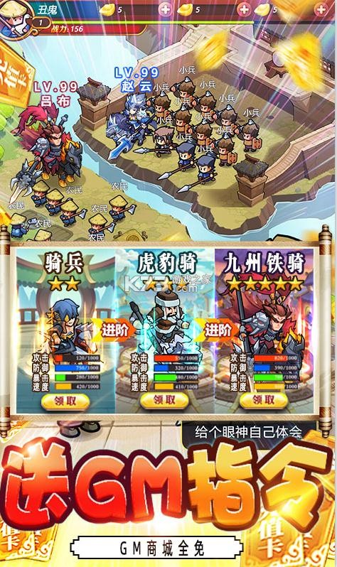 运用兵种的互相克制联系让玩家可以非常自在的在战斗中指挥作战,并占据更加多的优势。在游戏里玩家需要收集武将派兵布阵征战四方,杀出一片属于自己的天地。