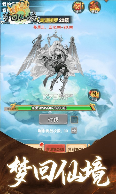 《梦回仙境送百连抽版》是一款山海经题材的策略游戏,游戏采用了Q版的画风,玩起来会更加的休闲,上线免费送十连抽来抽取橙色武将,每日在线登录无限送抽,稀有武将抽到手软,海量真充福利等你来拿。