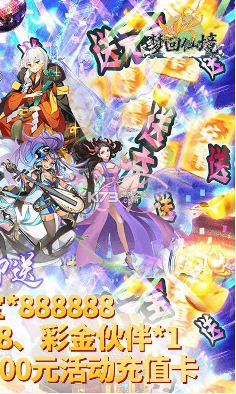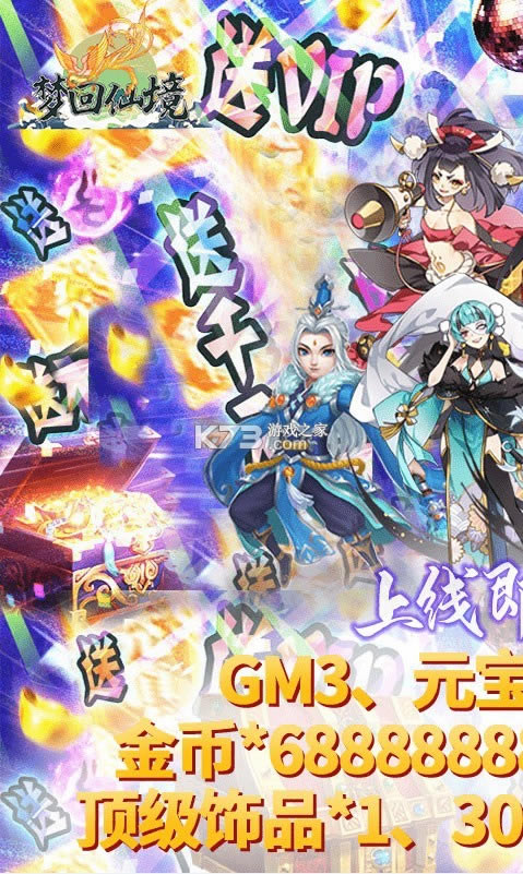 ★创角即送元宝*888888、金币*68888888、1000元活动充值卡*3、彩金伙伴任选包*1、顶级饰品任选包*1!