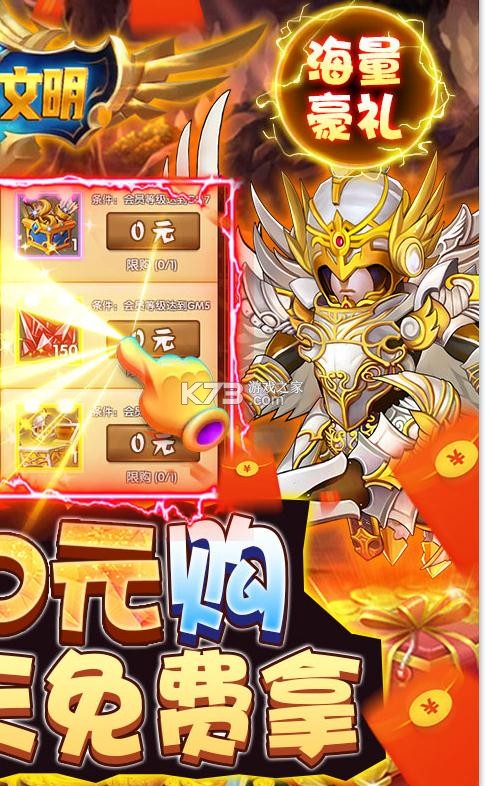 《灵光文明-天天零元购》作为一款二次元全明星题材的乱斗放置挂机游戏,每日上线送68商城卡,GM等级免费飞升,更有0元购GM商店超值道具免费拿。