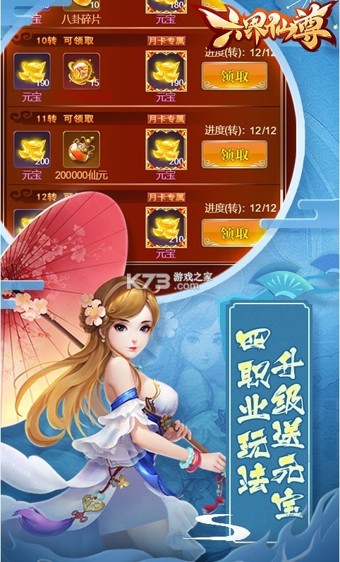 《六界仙尊5倍首充版》是一款由小说改编而来的游戏,游戏中有多样化的战力养成系统,还有仙侠世界中的经典元素,自由的来搭配技能组合,还有百变炫酷时装,超高战力极品神器直接免费赠送。