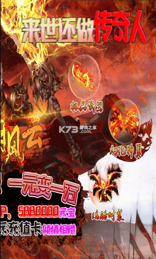 1、上线送白金VIP,100元充值卡,元宝*5880000!
