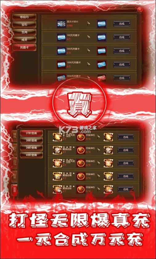 4、刷BOSS就爆真充卡碎片,免费合成真充卡,最高可合成10000元!