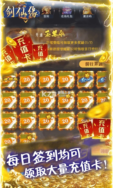★每日登录、签到均可领取大量充值卡!七日登录还送1800元真充卡!