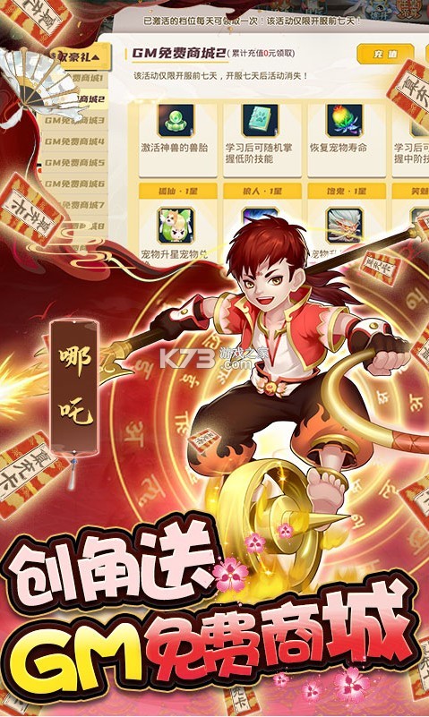 7.上线送10档免费GM商城,开服七天纵想狂欢!