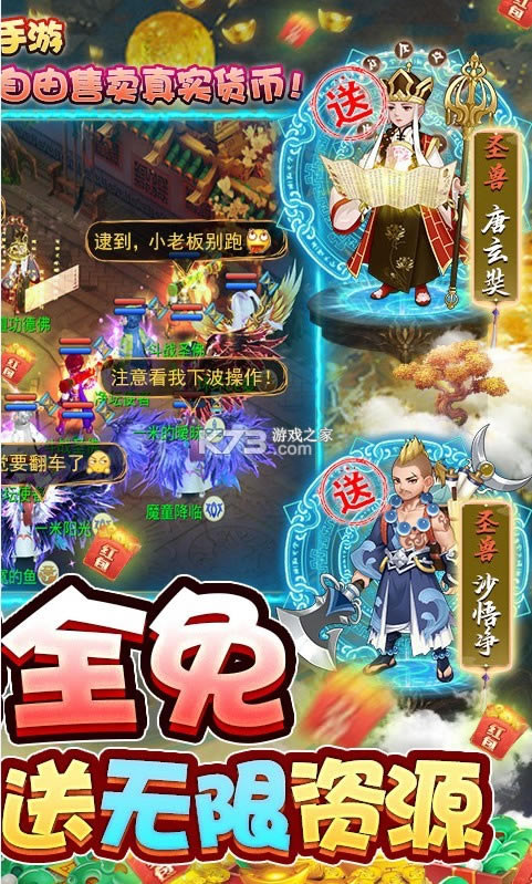 《梦回西游记GM商城版》是一款西游题材的回合制手游巨作,游戏登录直接免费领取全圣兽礼包和极品宠物等福利,上线送无级别神装,前期直接无压力进行推图,还有无限抽奖券和无限资源免费领取。