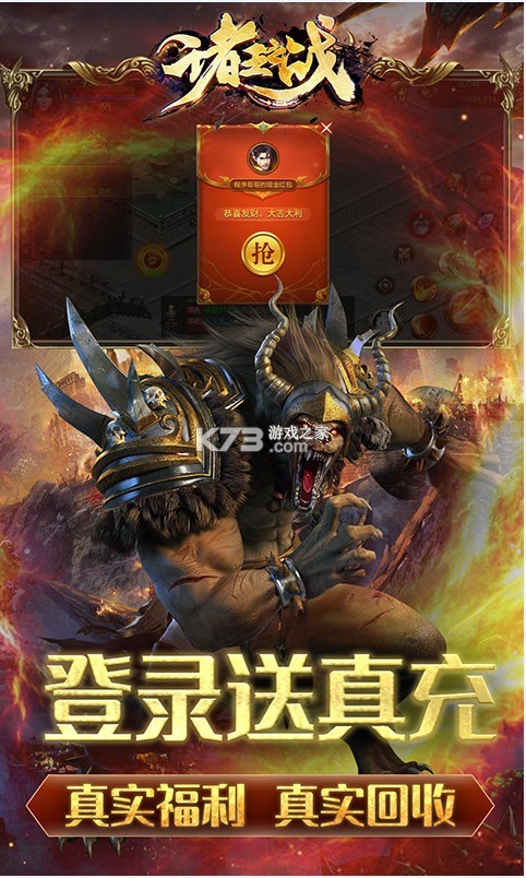 《诸王之战高爆版》是一款经典的传奇世界游戏,游戏还原了当年端游的传奇界面,还有各种各样的复古活动等等,超高的爆率让你一秒爆神装,上线免费赠送首充,首充奖励直接送神装,一秒当大佬。