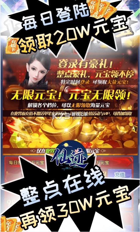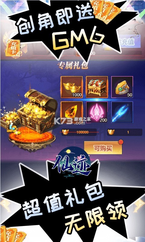 《仙迹送GM版》是一款仙侠rpg类的游戏,全新的福利版本来袭,每日登录都能领取真充,激活特权直接翻倍进行领取,签到和在线都能领取大量的元宝奖励,战斗力直接飙升,还有超高的50倍返利。