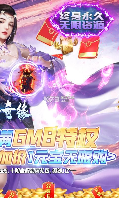 开局免费送十阶坐骑羽翼大礼包,送SVIP10,月卡,神兽灵宠,元宝*888888,铜钱1亿!98送直升GM6特权,送20倍真充,提前解锁高阶GM商城,极致体验1元宝无限购!全地图自由飞行,跨越千山万水,千人同屏,暴燃仙界大战,华丽百变时装,伙伴灵宠等百变玩法,畅游最精彩的仙侠世界。