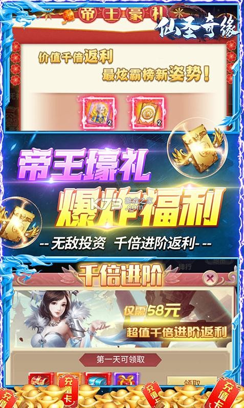 《仙圣奇缘-送满星死神》登录壕礼无门槛送满星死神!创角免费再送满GM8特权,GM商城全场极品道具加量不加价,统统只要1元宝!终身永久无限资源真无限开启,一次购买终身无限免费领,再也不用担心元宝不够花!