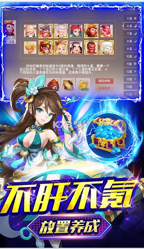 游戏采用RPG+挂机玩法模式,兼具RPG游戏的带入感及成长乐趣,又通过挂机玩法免除了肝帝们的苦恼,壹觉睡醒,指尖收获,爽快十足!游戏为每位英雄精心设计了绚丽的技能特效,壹动壹静都能彰显出角色特色。