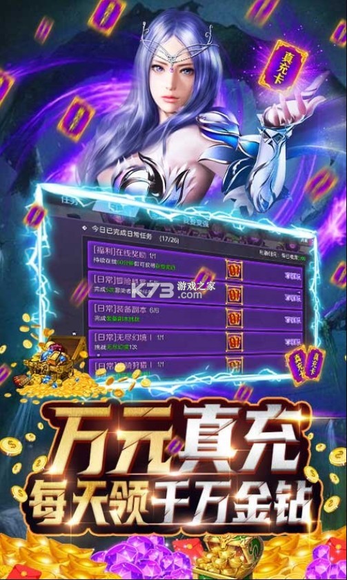 2.上线送无门槛1000元充值卡,使用立刻获得100w金钻,1:1000充值比例,海量钻石花不完。