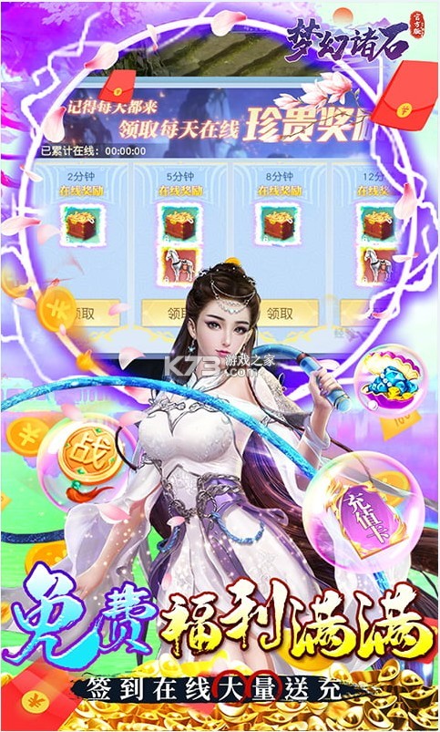 《梦幻诸石官方版送万元真充版》是一款仙侠类角色扮演游戏,玩家能够在游戏中不断的进行试炼来提高自己的等级,上线免费送满v,还有百连抽和无限绑元,每日在线送真充,签到可领取万元充值。
