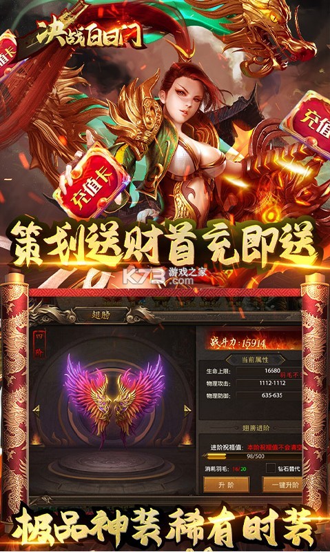 3.充值比例1:10000,首充3倍钻石,续充1.5倍钻石。首充即送极品神装、稀有时装、极品武器,以及海量稀有道具。