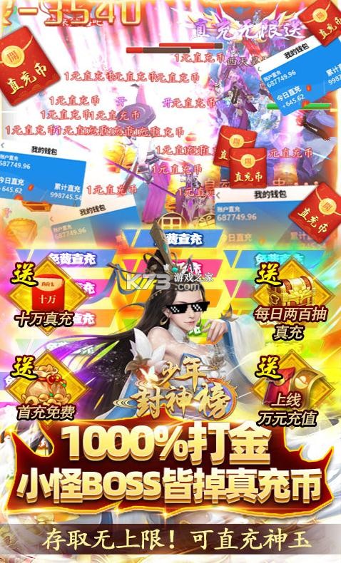 ★后缀说明:上线送GM3,小怪、打金BOSS免费产出直充币,使用后增加钱包余额,钱包额度充足即可提现充值