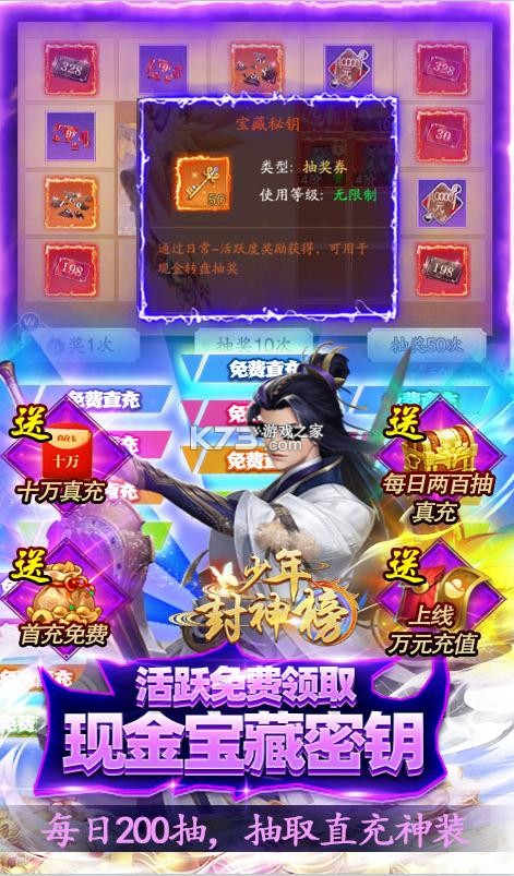 《少年封神榜OL》全天挂机打小怪,每天送200抽,升级稳送10w元真充,线下最高可8倍的返利,丰富的御剑飞行,高度自由的pk战斗,带给玩家们超强的带入感,在开放的世界中来刷怪,力求给玩家们身临其境的体验感,高自由的pk模式,战斗的酣畅淋漓。