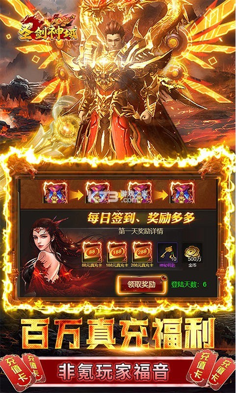 3、百万福利一:登录无限领真充,开局送百万元宝!