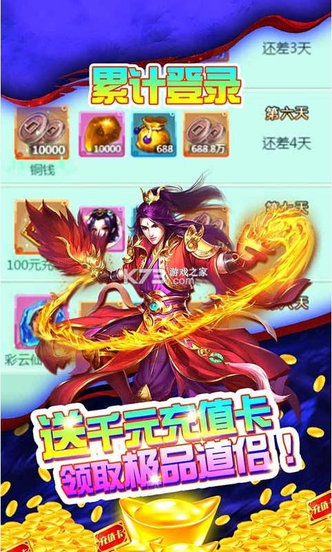 2.送金元活动,累计登录送千元充值卡,领取极品道侣!