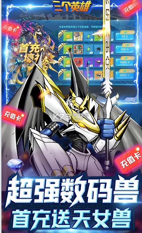 上线既送VIP10, 赠送188888钻石,100万金币,超2000元真充卡!《三个英雄-送千元真充》是基于动画片《数码宝贝》原作精心制作的手机游戏,完美重现《数码宝贝》动画剧情。