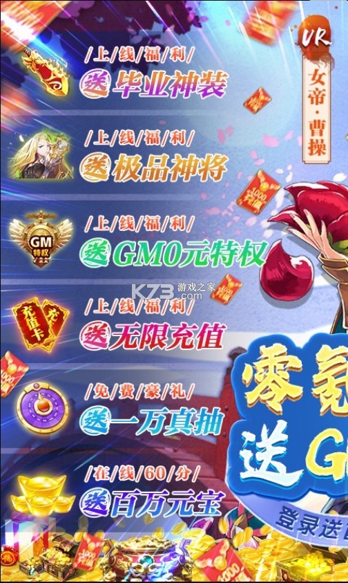2.上线送无门槛万次抽奖,可获得海量材料,1:500充值比例,海量元宝花不完。
