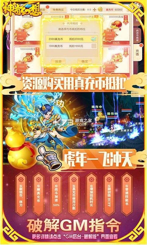 2、gm破解版,免费刷buff、刷体力、刷技能书、刷真充币等;