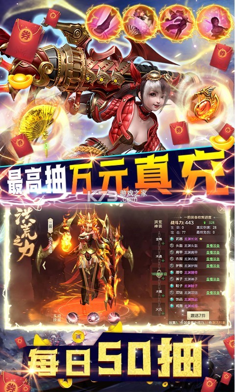 4.首充任意额度送神装、丰厚礼品,助你战力疯狂上涨!