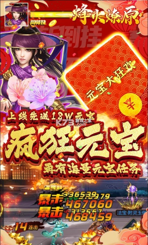 精致的场景让大家都能顺利的上手,多元化的挑战模式更是为你展现出游戏带来的魅力,丰厚的福利更是让你体会到游戏的乐趣。玩家登陆游戏更有10连抽免费赠送,双倍元宝返利,更有名将姬野让你领取,在烽火燎原这款手游当中,经典的玩法让你更顺利的就能融入其中,多元化的挑战模式,更是让你顺利的升级变强。精美的画面场景为你带来更为真实的游戏体验,使你更顺利的融入其中。帅气的战斗,充满策略感的战役,为你带来挑战,更能使你沉浸