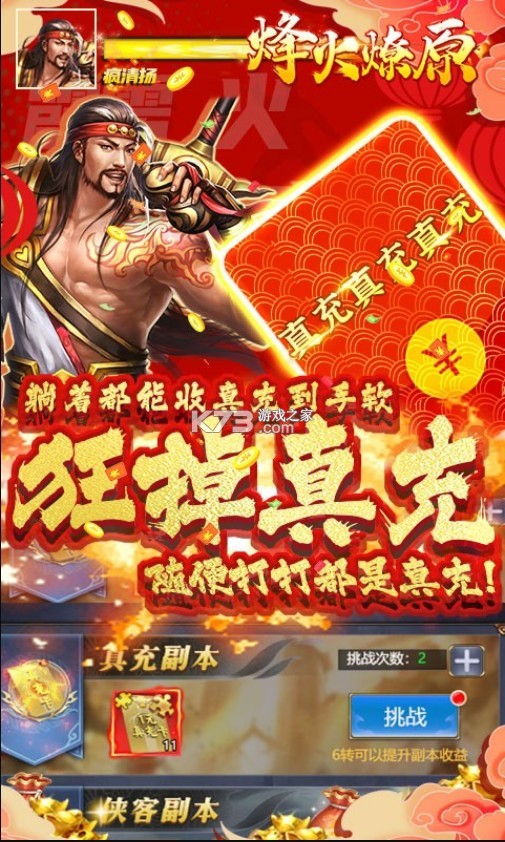 《烽火燎原爆真充版》是一款武侠街机题材的角色扮演游戏,游戏还原了真实街机的场景,玩家能够自由的收集武侠,还能够进阶技能,和好友一起组队来打魔王,完成任务还有海量的元宝直接领取。