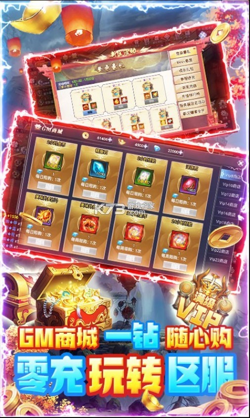 2.开放GM商店,一钻可以玩转,纵享特权,快人一步。增加赞助系统,大量珍稀材料,可以快速获取。