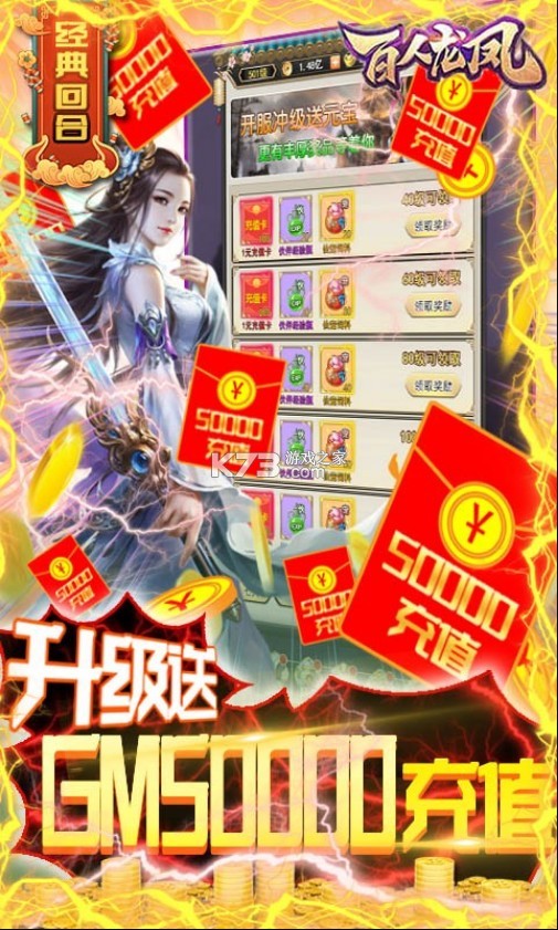 2.升级再享50000元充值福利,百分百激活GM等级经验,特权升级快人一步!