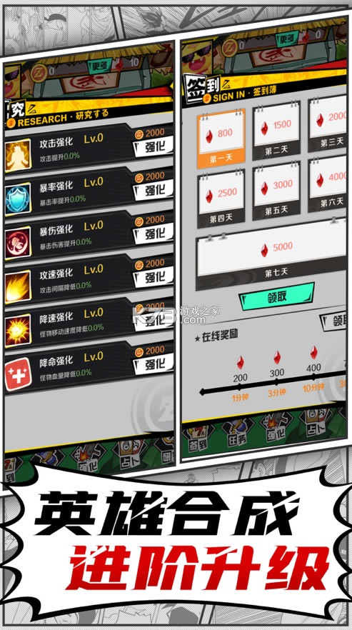 英雄合成养成类战斗游戏,难度系数不断升级的挑战任务,对玩家战斗能力的考验会越来越大,从英雄的养成、武器装备的打造等方面来不断提升个人的战斗能力,完成更多的挑战任务,解锁更多新奇的玩法,从完成的任务里面还能够得到对应的奖励,有助于个人战斗力的进一步提升