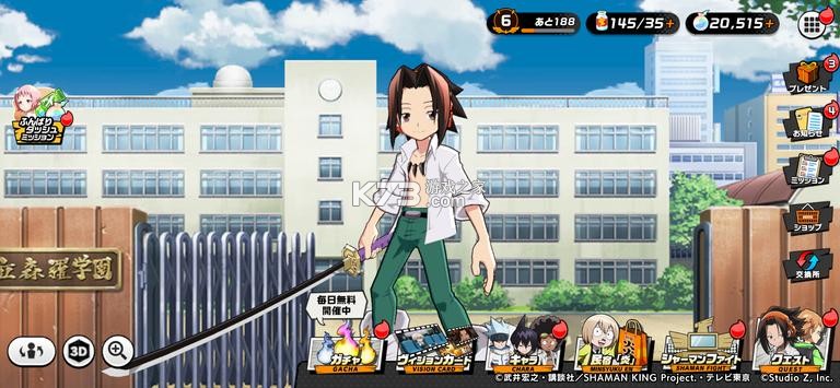 《通灵王发奋战记日服版(SHAMAN KING ふんばりクロニクル(ふんクロ))》是知名动漫作品《通灵王》系列的人气改编手游,其将以3d卡通画面再现原作的优秀画质,你将与通灵小子一起在这个独特的通灵世界里冒险,并亲身亲历动漫中的剧情和内容。