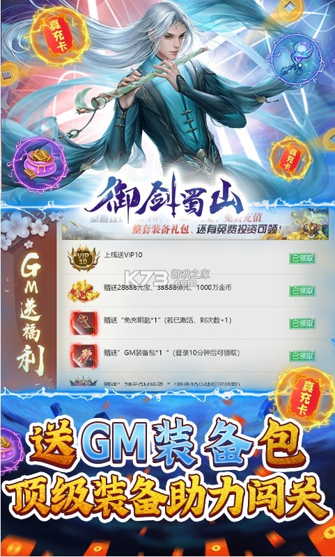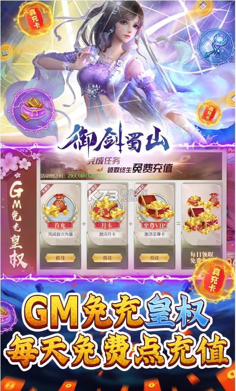 ★完成任务领取GM免充皇权,每日领取免费充值,福利多的轻松休闲手游!