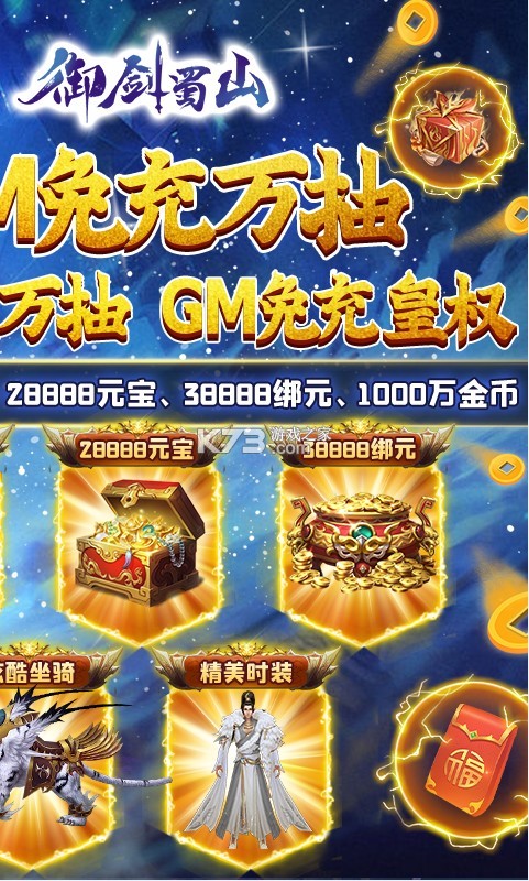 ★上线即送VIP10,28888钻石、38888绑钻、1000万金币,GM装备包、海量资源助你轻松游戏!
