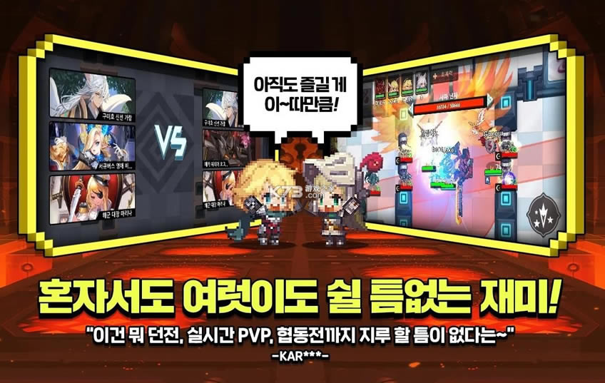 《Guardian Tales(守望传说/坎公骑冠剑)》充满了复古的游戏画风,多种迥异的游戏风格,通过剧情和解谜和协作战斗,8bit的画风还原记忆中最纯真的像素风格,炫酷的英雄组队战斗争夺最高的荣耀。