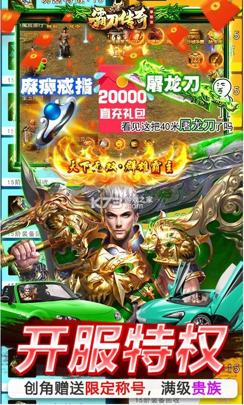 《霸刀传奇(GM直充劫服)》是一款以即时PVP为核心的超人气单职业传奇手游,游戏内PVP攻沙,弑夺BOSS,传奇色彩原汁原味,步步都是回忆!在这里满地金币装备,在这里等级飙升征战不休,在这里BOSS打不停,神装满身,在这里荣耀环身,众生膜拜,在这里,和兄弟共同奋战,再现当年沙巴克攻城盛世!战斗新体验,开启爽快激斗新感觉。最强传奇之路,等你来谱写!一款还原经典传奇大型ARPG放置类H5游戏,游戏采用无缝跨屏模式,力求带给玩家原汁原味的传奇体验。通过经典元素与创新养成系统之间的碰撞,随时随地开战。霸刀传奇下载,给你不一样的游戏体验,野外自由PK激斗,千人同屏,万人血战,还有跨服远征,沙城争霸经典玩法,让你和战友并肩作战,攻取沙城,原汁原味的经典传奇,战士、法师、道士三大职业互为攻守,打造最强三大职业,内置语音聊天系统,和玩家实现零距离无延迟交流沟通。