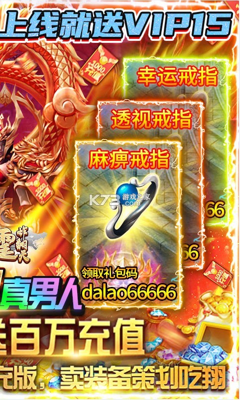 3.输入礼包码dalao66666领取麻痹戒指,输入礼包码dalao88888复活戒指