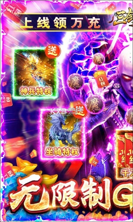 3.充值比例1:1000,连续登录即可领取价值千元的海量红钻和极品侠客!
