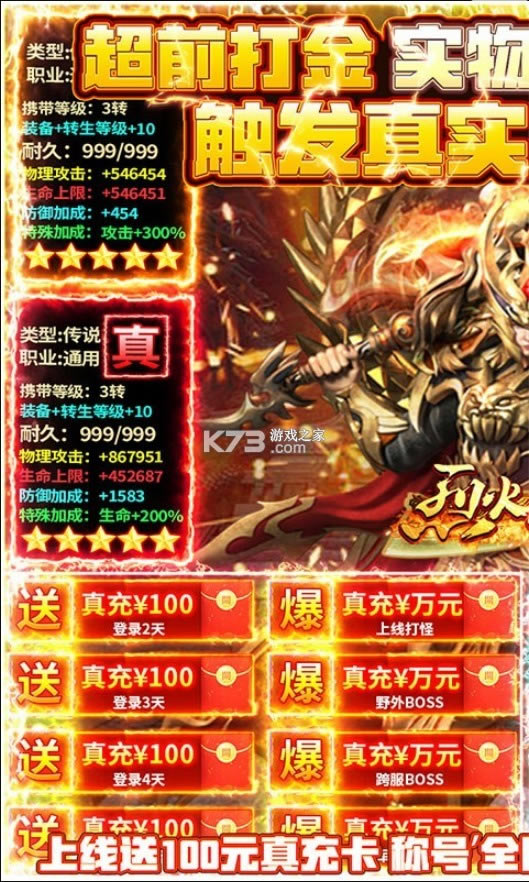 《烈火星辰首充4倍版》是一款经典的热血传奇游戏,全新的实物打金系统,全部都可以兑换为充值点券,所有档位全部都是真实充值,还有超强狂暴之力,开启后有超高的装备爆率和伤害。