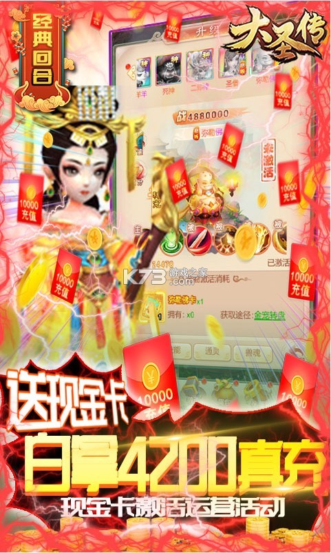 2.主界面参与GM万充活动,连续登录累计可领10000元真充卡!