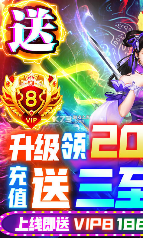★创号即送VIP8、元宝188888、金币1000W、3阶紫色装备箱*5、绝对真实不忽悠;